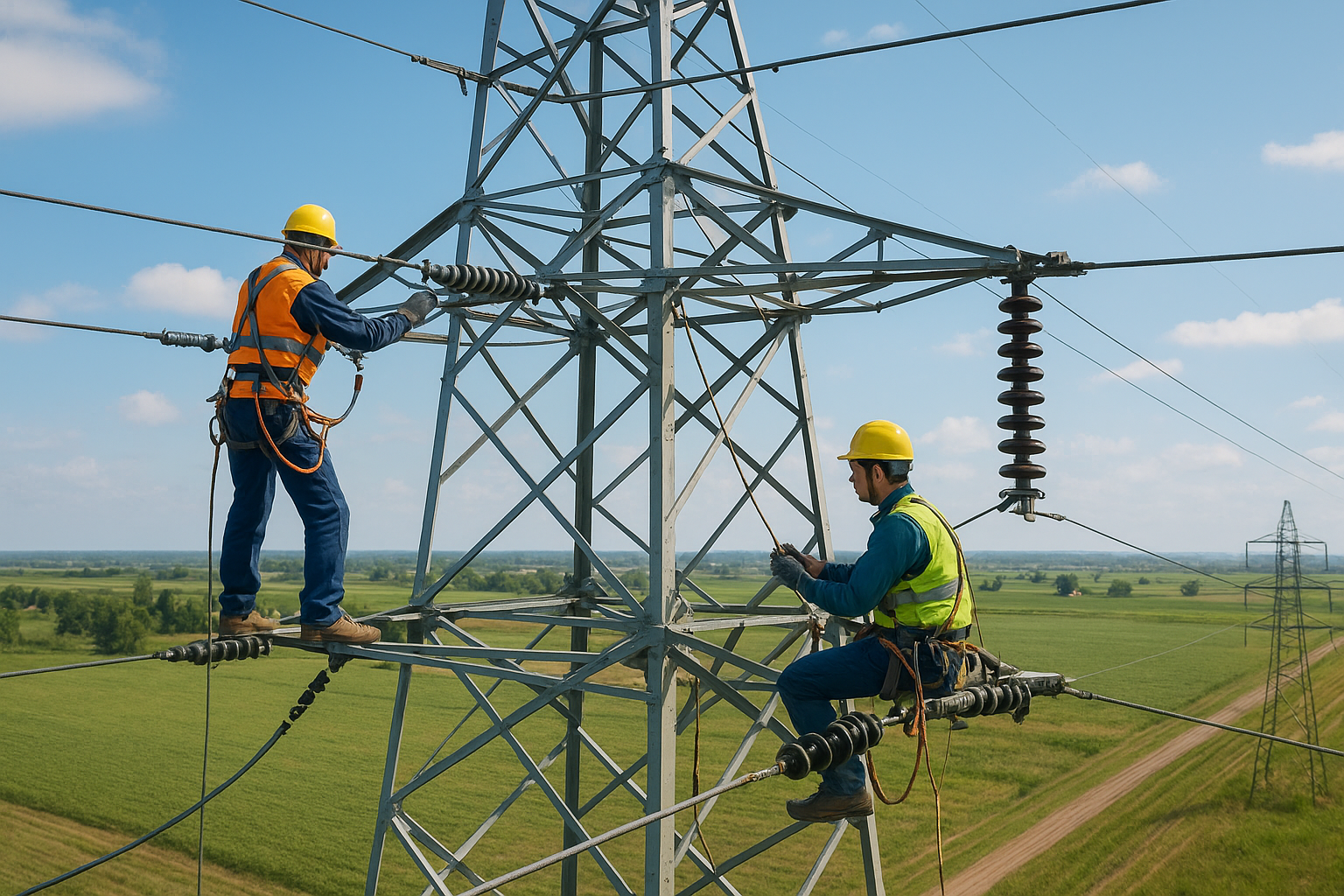 Building and installation of transmission systems that carry electricity from power generation plants to substations, where it is then distributed to consumers. This involves the design, erection, and maintenance of transmission towers, poles, conductors (wires), insulators, and related infrastructure.